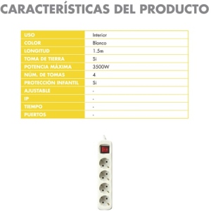RRR BASE ELECTRICA MULTIENCHUFE 4 TOMAS INTERRUPTOR CABLE 1.5 IP2