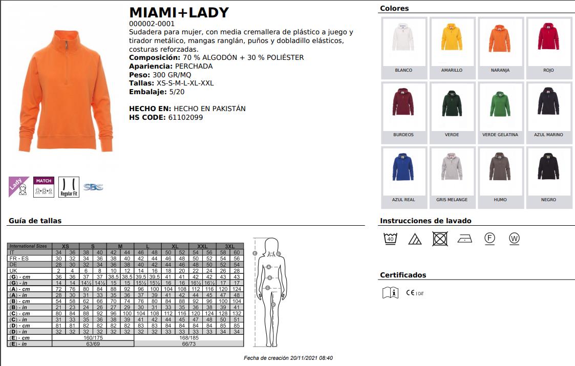 RRR SUDADERA MIAMI LADY NARANJA T.S