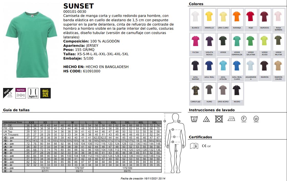 CAMISETAS 100% ALDGODON SUN»SET» MARRÓN M MEDIDAS 53 39 30 100 % ALGODÓNPESO 165