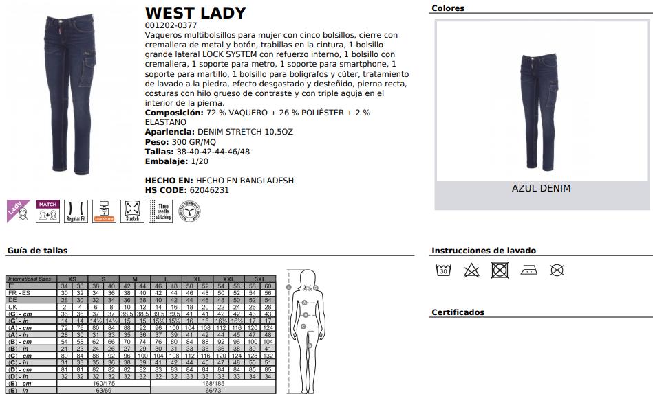 Vaqueros multibolsillos para mujer con cinco bolsillos, cierre con cremallera de metal y botón, trabillas en la cintura, 1 bolsillo grande lateral LOCK SYSTEM con refuerzo interno, 1 bolsillo con cremallera, 1 soporte para metro, 1 soporte para smartphone, 1 soporte para martillo, 1 bolsillo para bolígrafos y cúter, tratamiento de lavado a la piedra, efecto desgastado y desteñido, pierna recta, costuras con hilo grueso de contraste y con triple aguja en el interior de la pierna