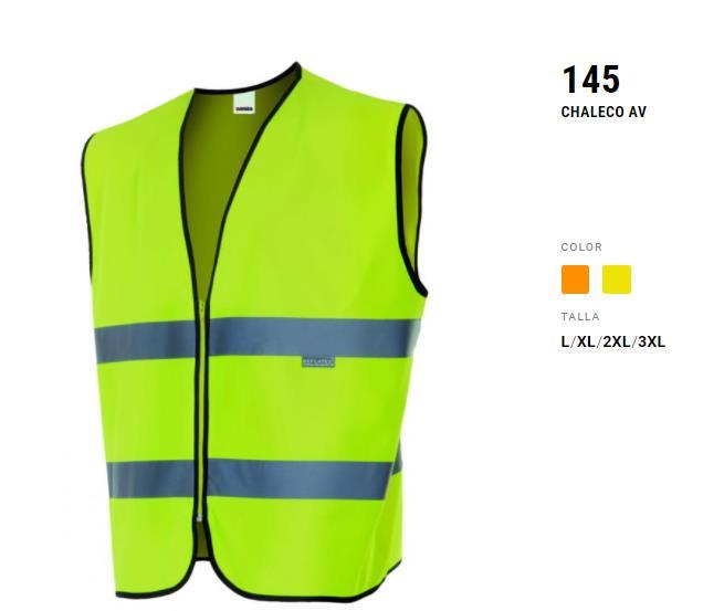 Chaleco de alta visibilidad con cintas reflectantes en el torso y cremallera central.