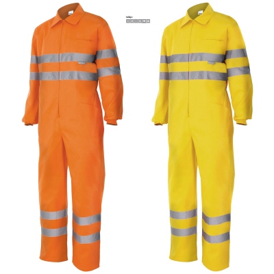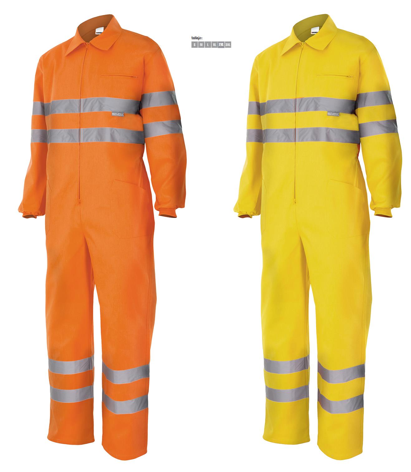 Mono de alta visibilidad con cintas reflectantes en torso, mangas y piernas.