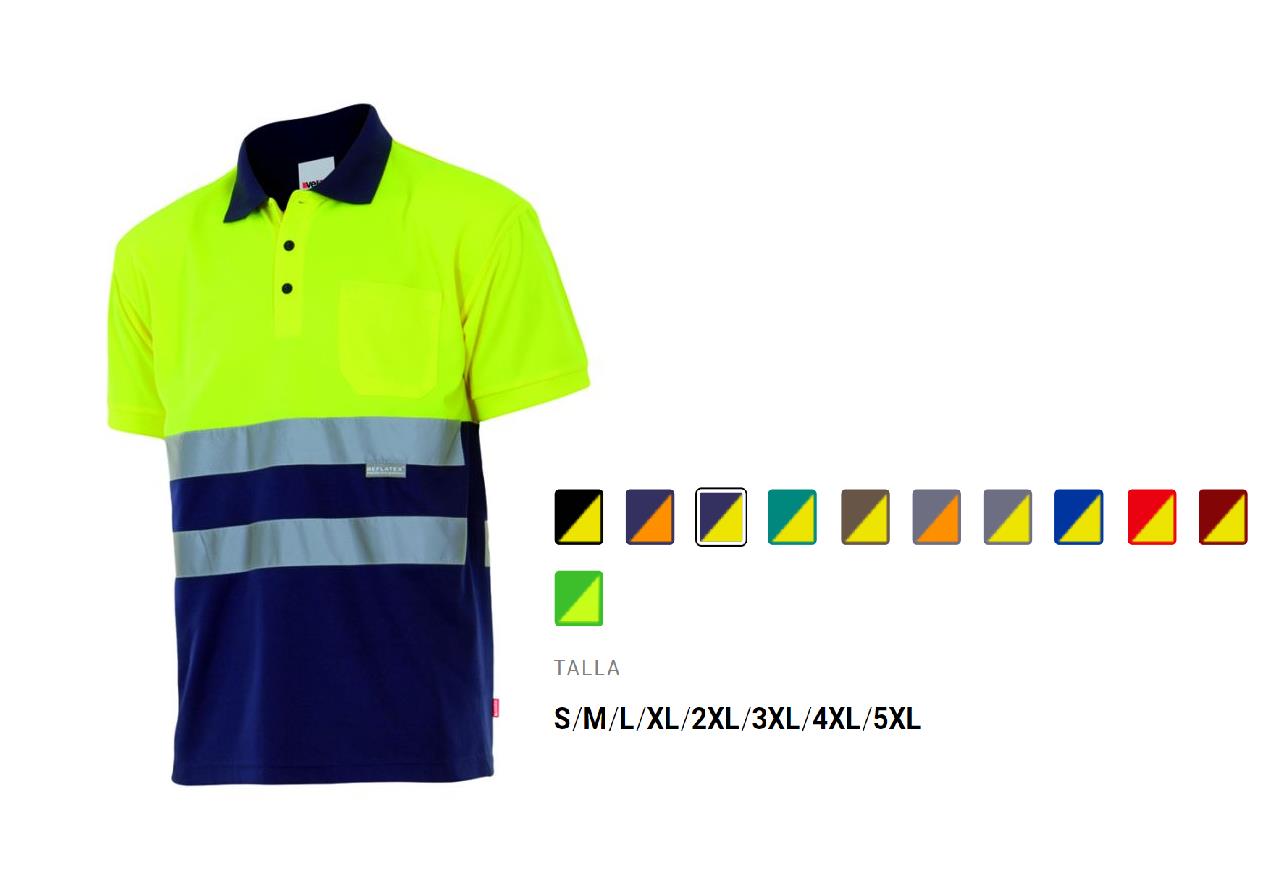 Polo bicolor de alta visibilidad de manga corta realizado en tejido transpirable.