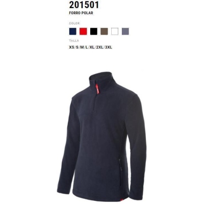 Forro polar. Tejido de microfibra, con ciere central en cremallera, tapeta interna vuelta en la parte superior tapando cremalleta. 2 bolsillos, con cremallera. Microfibra polar, 100 % poliester, 220 g