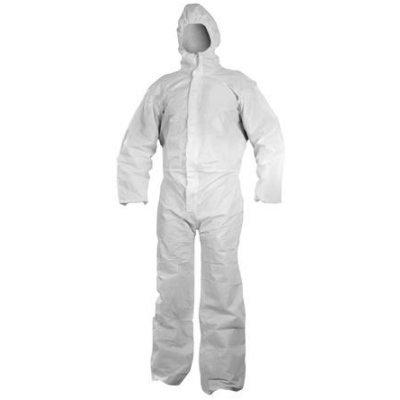 Buzo de protección química para protección frente a partículas sólidas suspendidas (Tipo 5) y productos químicos líquidos (Tipo 6). Transpirable y antiestático. Cierre por cremallera central con solapa adhesiva. Capucha con elástico. Puños y perneras