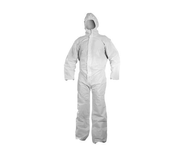 Buzo de protección química para protección frente a partículas sólidas suspendidas (Tipo 5) y productos químicos líquidos (Tipo 6). Transpirable y antiestático. Cierre por cremallera central con solapa adhesiva. Capucha con elástico. Puños y perneras