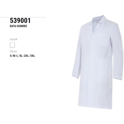 Bata con cierre central con botones, tres bolsillos de parche y cinturón en la espalda.