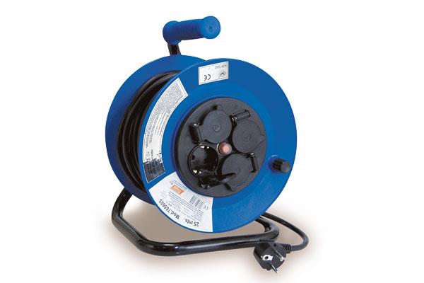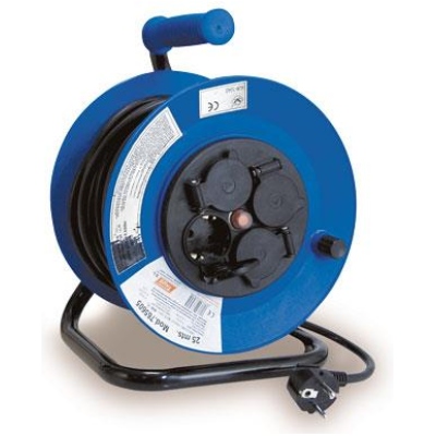 Enrollacable eléctrico 25 metros. Cable H05VV-F 3X1,5 4 bases con tapa (2P T) con termostato 230V 13A 3000W IP44