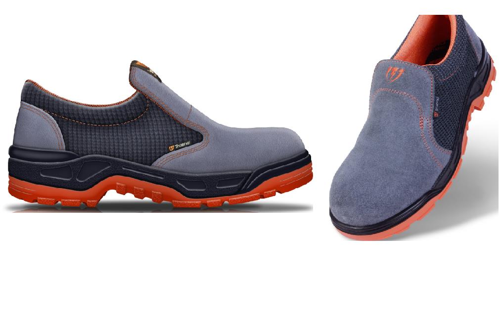 Zapato seguridad serraje afelpado sin cordones. Cuádruple cosido de seguridad con forro textil transpirable. Tejido FRESH exterior. Puntera “composite” y plantilla anti perforación textil (EN 12568). Suela poliuretano Bi Densidad en color naranja/negro (Con componentes anti-hidrolíticos (LLS – Long Lasting Sole), con un periodo de almacenamiento sin degradación de la suela de 6 años máximo, certificado por SATRA®).