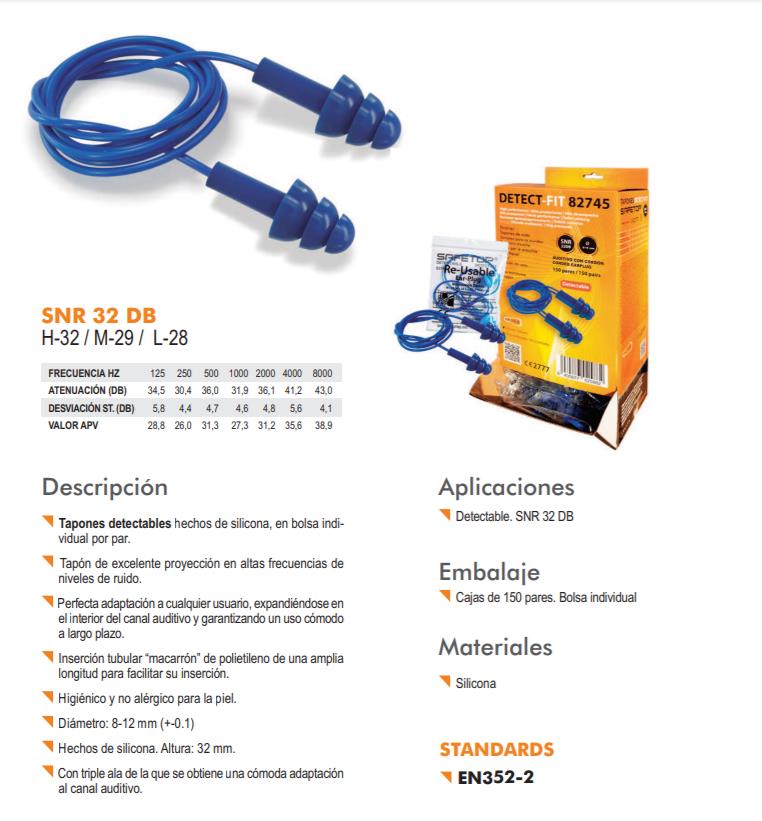 Tapones detectables hechos de silicona, en bolsa individual por par.