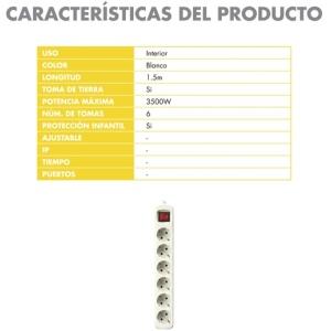 RRR BASE ELECTRICA MULTIENCHCUFE 6 TOMAS CON INTERRUPTOR CABLE 1.