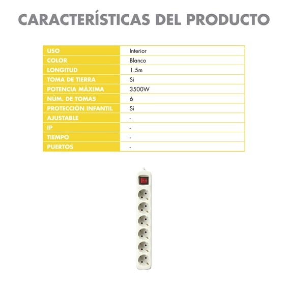 RRR BASE ELECTRICA MULTIENCHCUFE 6 TOMAS CON INTERRUPTOR CABLE 1. cantidad