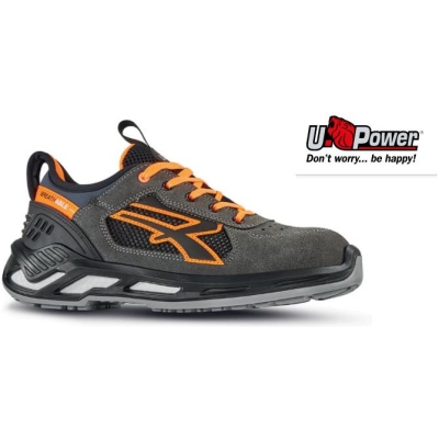 Zapatos de seguridad bajos, ligeros y cómodos U-Power de la línea Red 360, con parte superior de nailon ultraflexible y gamuza suave, collarín con tejido de fibra Lycra®, escudo anti- impactos en el talón, puntera de aluminio, antiarrugas, antideslizante y suela de poliuretano PU / PU, S1P SRC ESD