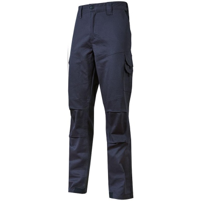 Pantalones de trabajo de algodón elástico. Con dos amplios bolsillos laterales multifuncionales, dos bolsillos delanteros y uno trasero. Cintura elástica y canesú trasero acentuado para una mayor protección de la zona lumbar. Cinta roja/reflex en el bucle tubular trasero. Rodillas preformadas para mayor comodidad. Cinta roja/reflex en el bucle tubular trasero. Bucle portamartillo. Triple costura, cierre central con cremallera y botón resistente a los arañazos. Talonera con tejido de refuerzo resistente al desgaste. Corte ajustado.